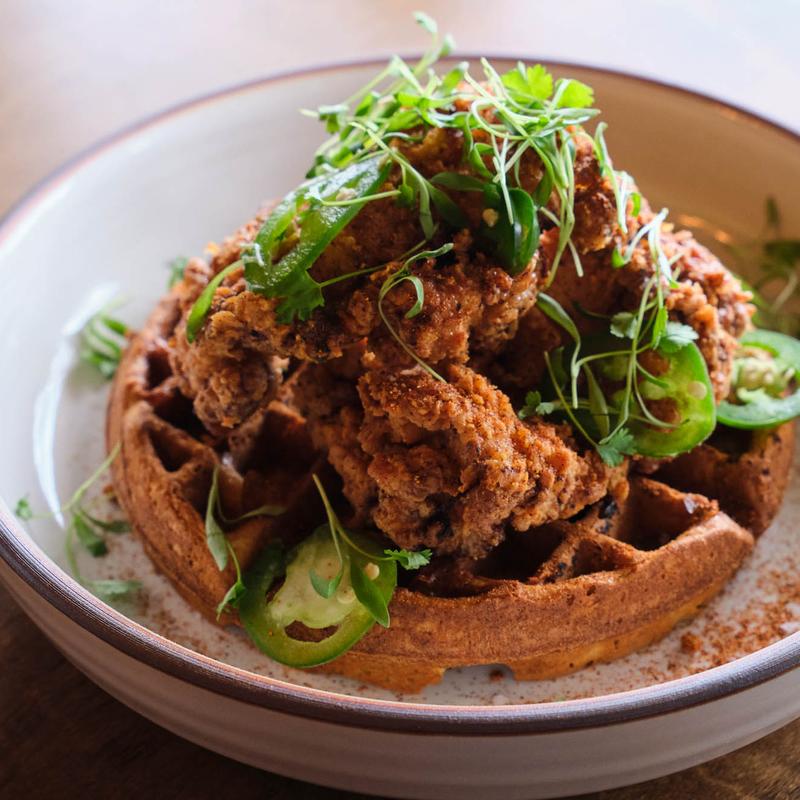 Chili honey, Zamm'z cajun seasoning, jalapeno, micro-cilantro